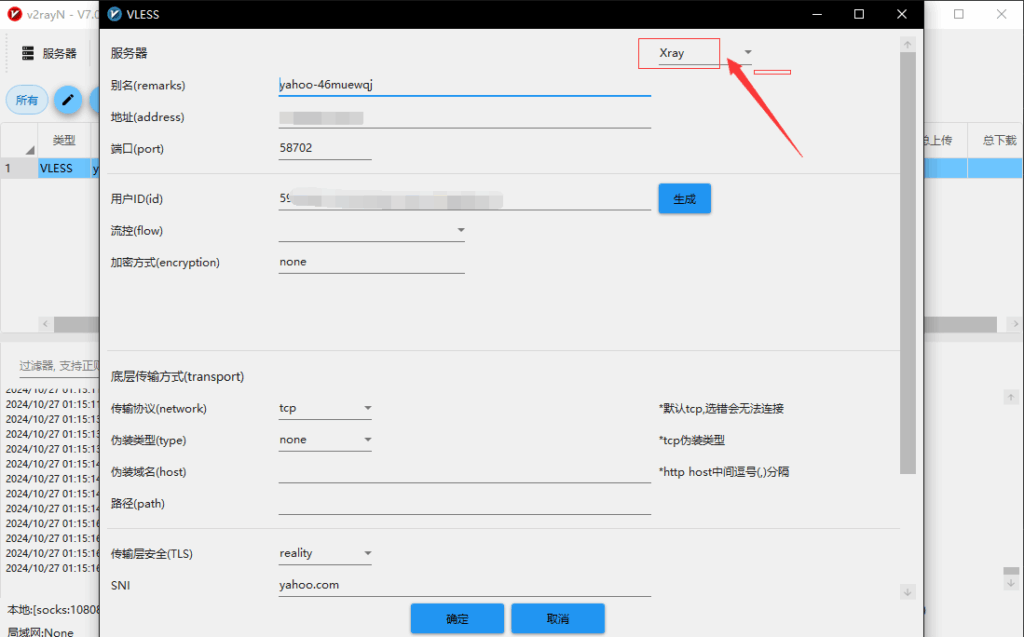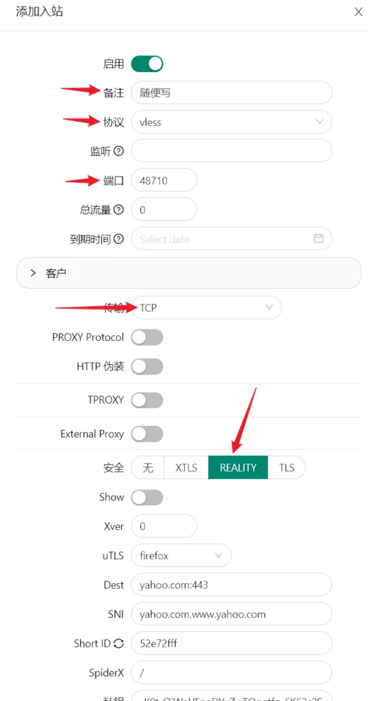 - 协议,默认就是vless,如果搭建reality协议就选vless。